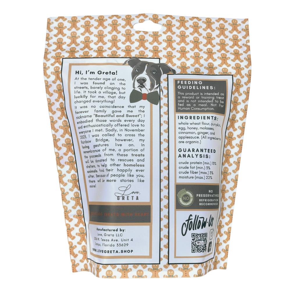 What would the holidays be without the delicious taste and warming spice of gingerbread? Our Joy and Gingerbone treats are inspired by the classic holiday dessert that features aromatic spices like cinnamon and ginger combined with just the right sweetness from honey and molasses. Of note, our treats are void of nutmeg, a common ingredient in traditional gingerbread, but one that is toxic for dogs... withĀ Joy and Gingerbone, your pup can now safely enjoy the flavor of the season! Bone appetit!Ā